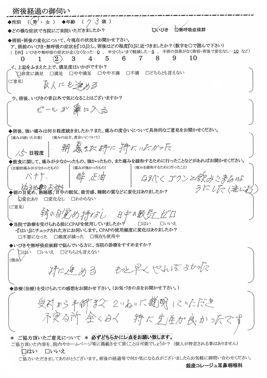 術後の患者様の感想 No.1786