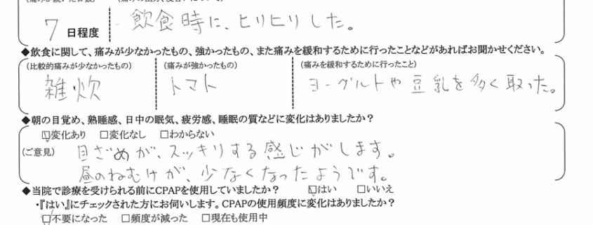 (痛みの程度について) 飲食時に、ヒリヒリした。