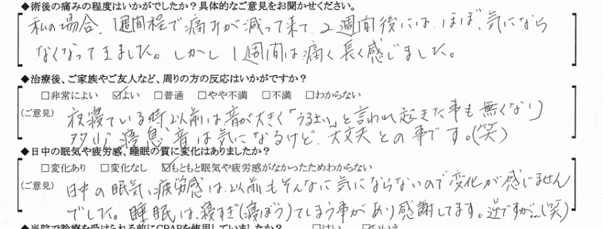 術後の患者様の感想 No.180