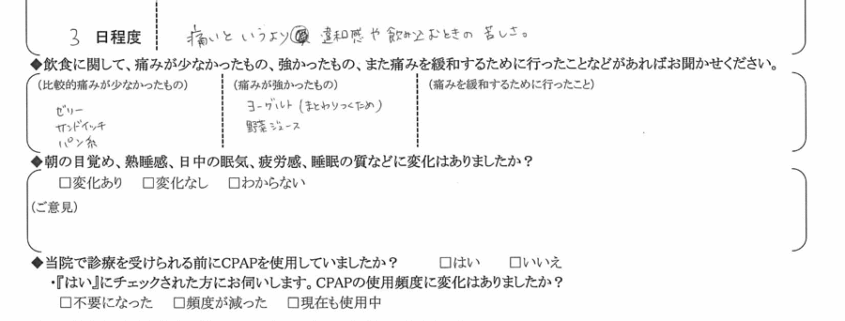 (ご意見) 疲れている時や飲酒した時はいびきがあるが、それ以外はほとんどなくなった。
