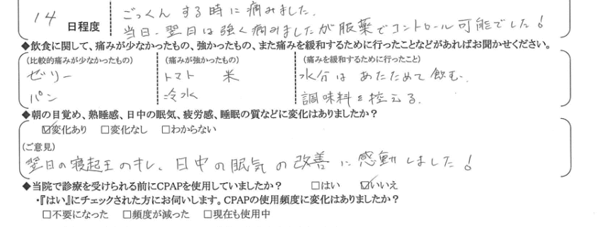 (ご意見) 翌日の寝起きのキレ、日中の眠気の改善に感動しました!