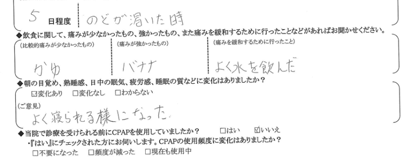 Q.飲食に関して、痛みが少なかったもの、強かったもの、また痛みを緩和するために行ったことなどあればお聞かせ下さい