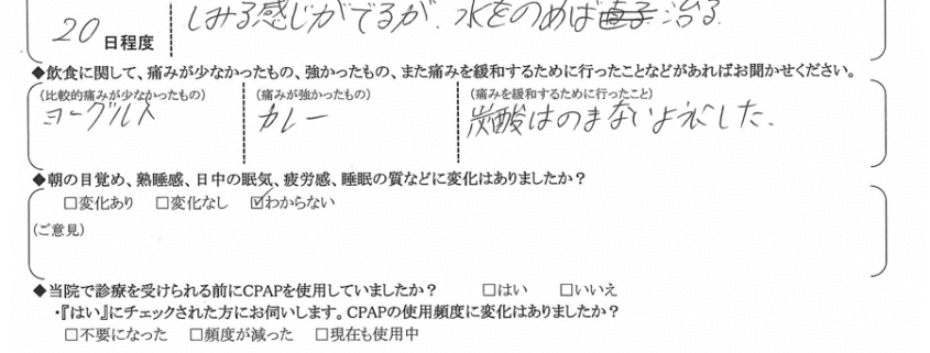 A:(痛みを緩和するために行ったこと) 炭酸は飲まないようにした