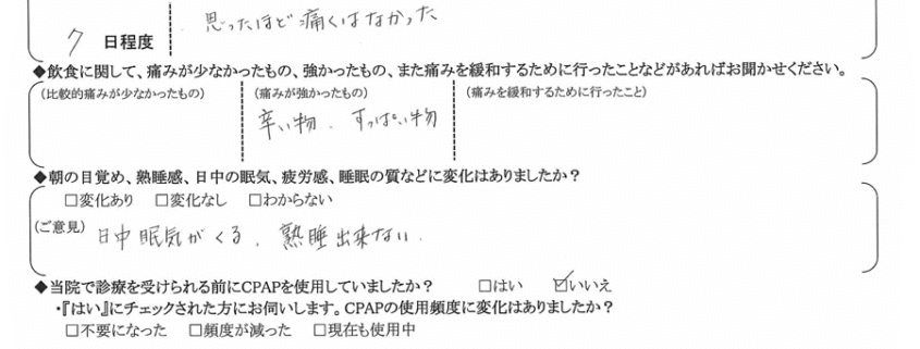 Q.診療(治療)を受けられての感想をお聞かせ下さい。