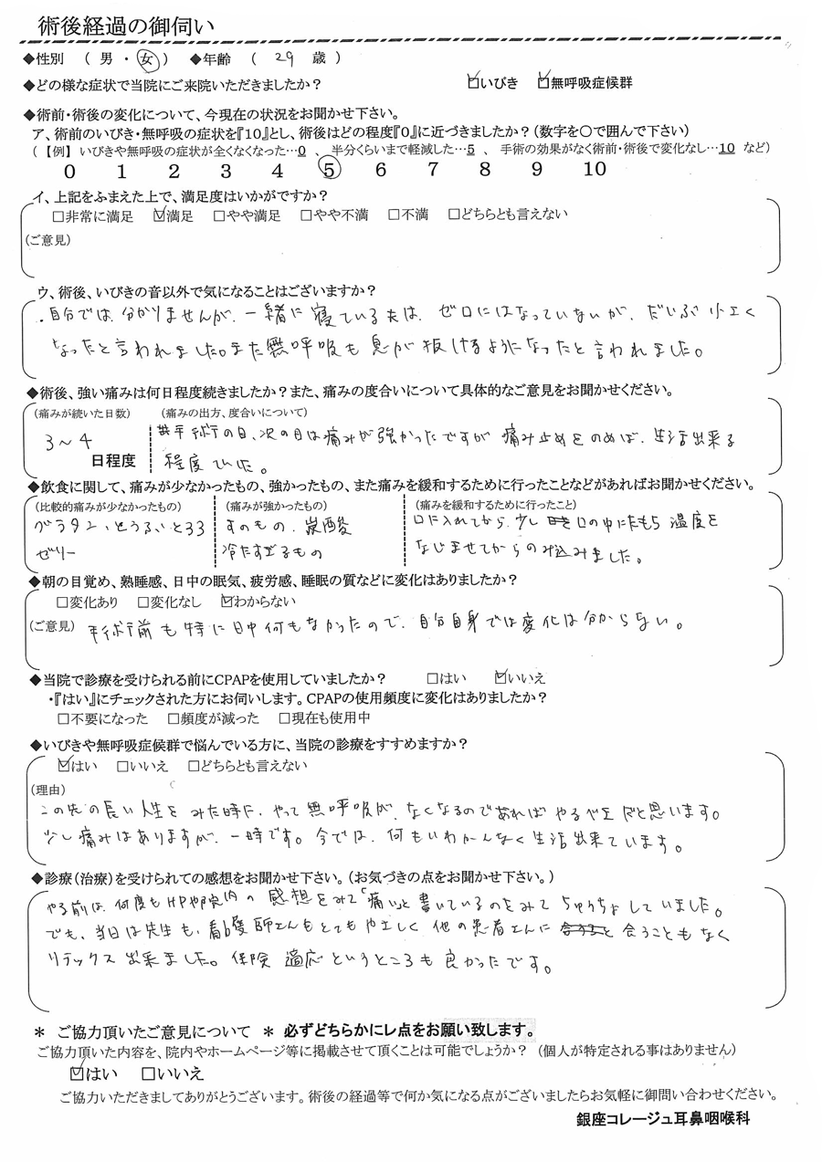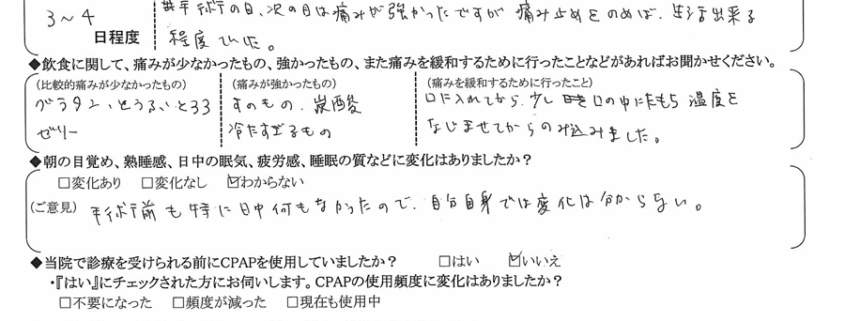 (ご意見) 手術前も時に日中何もなかったので、自分自身では変化は分からない。