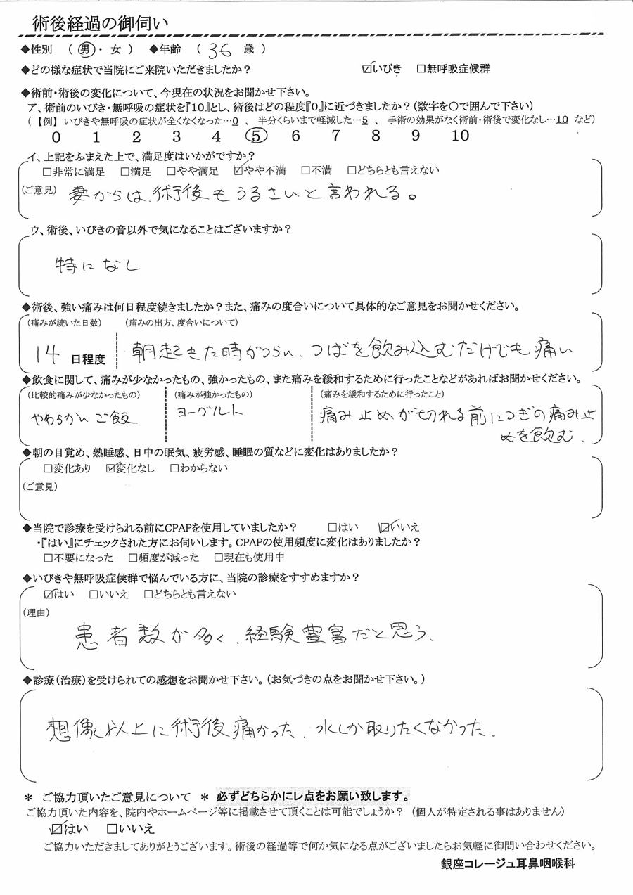 (ご意見)  妻からは術後もうるさいと言われる。