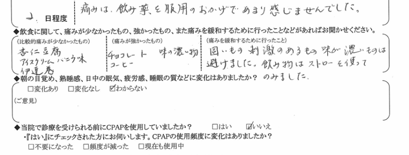 Q.診療(治療)を受けられての感想をお聞かせ下さい。