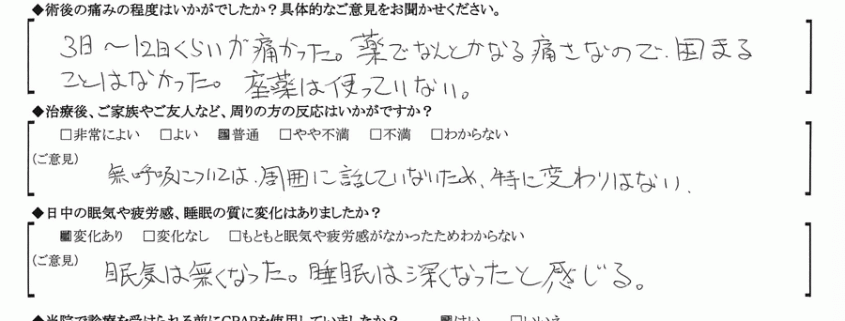 (ご意見) 無呼吸については周囲に話していないため、特に変わりはない。