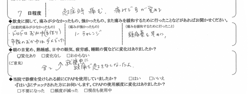 (痛みの程度について) 起床時痛む。痛みで目が覚める。
