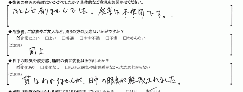 (ご意見) 日中の眠気は、緊張感がなければ普通にきますが、睡眠の質は上がったと思います。