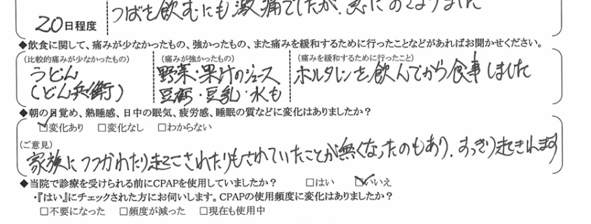 (ご意見) 近所に聞こえる程の、いびきや無呼吸後のうなりがすごく減少しました