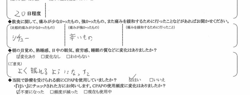 (ご意見) よく眠れるようになった