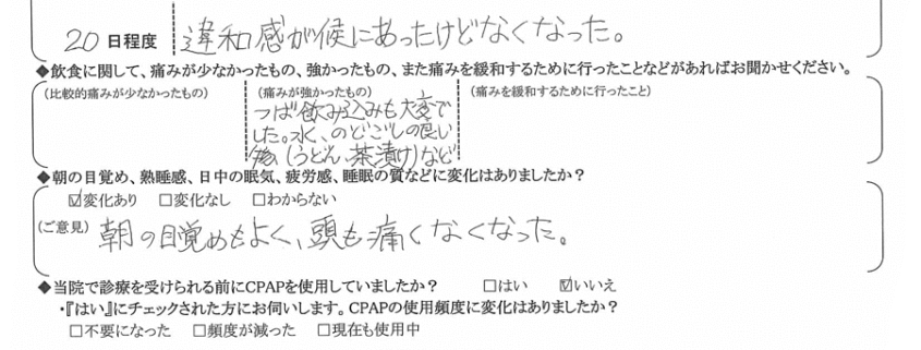 (ご意見) 朝の目覚めもよく、頭も痛くなくなった。