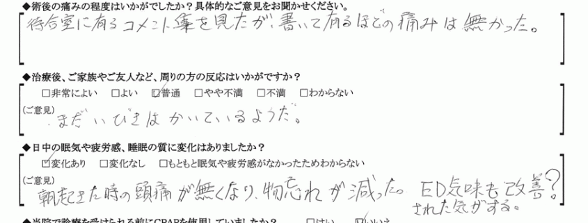 Q.いびきや無呼吸症候群で悩んでいる方に、当院の診療をすすめますか?