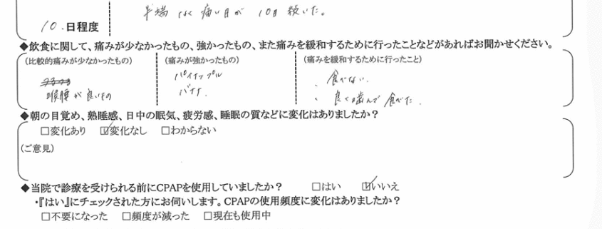 A:(痛みを緩和するために行ったこと) 食べない・よく噛んで食べた