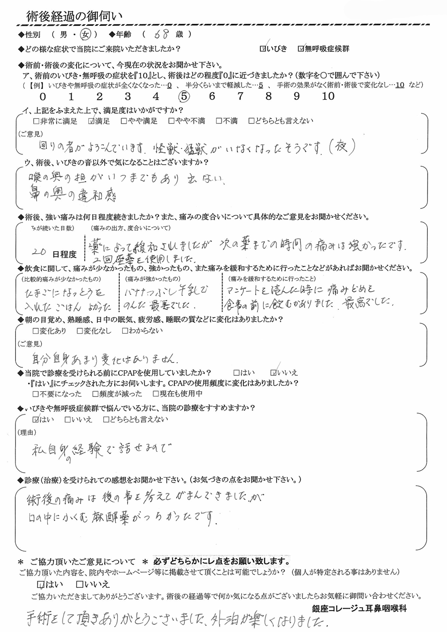 術後の患者様の感想 No.1945