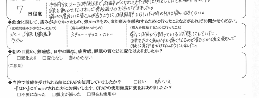(ご意見)  いびきに悩んでいる人は是非受けた方がいいと思います。
