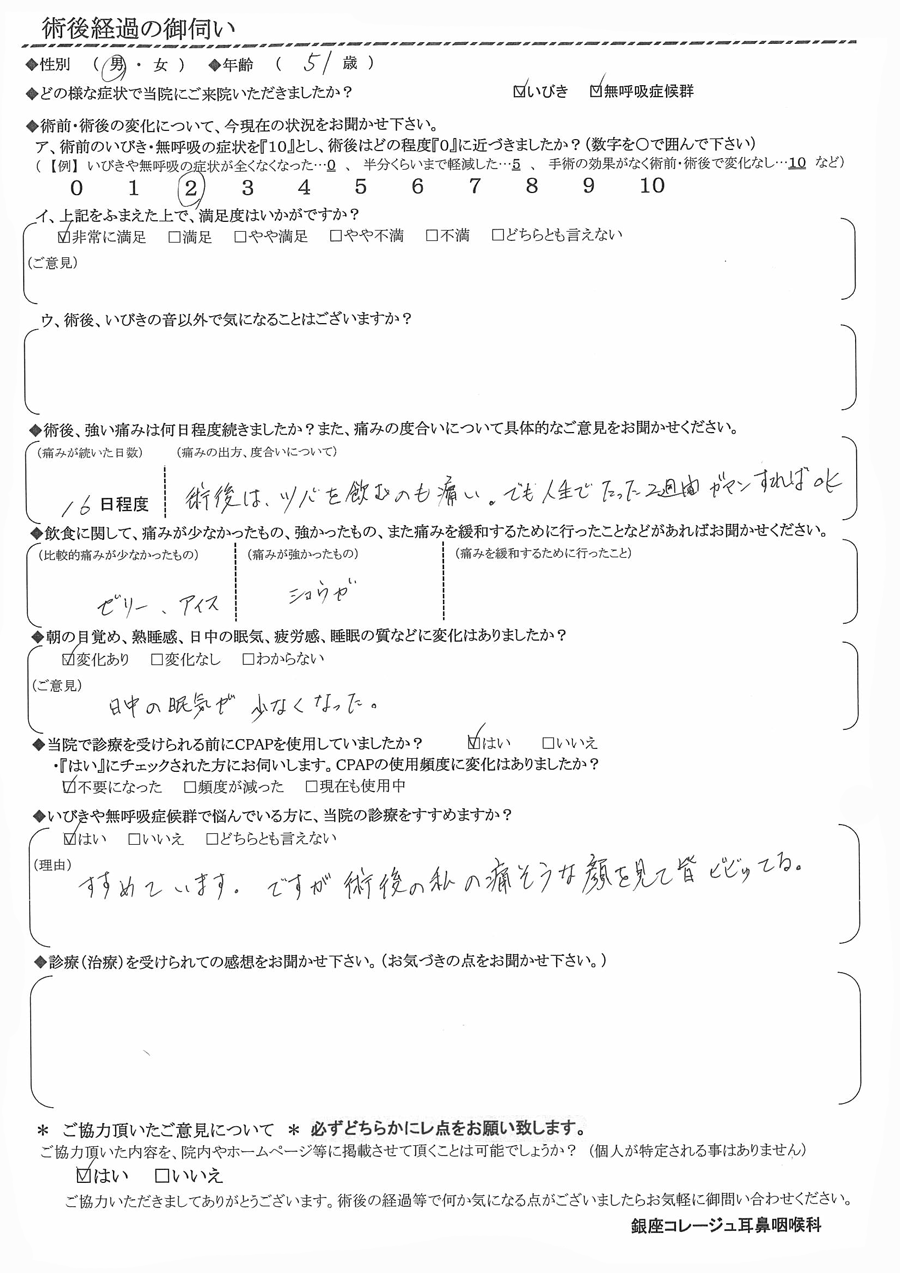Q.いびき・無呼吸で悩んでいる方に、当院の診療をすすめますか? 理由もお聞かせください。
