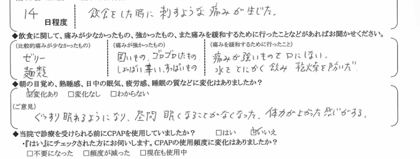 (痛みの程度について) 飲食をした時に、刺すような痛みが生じた。