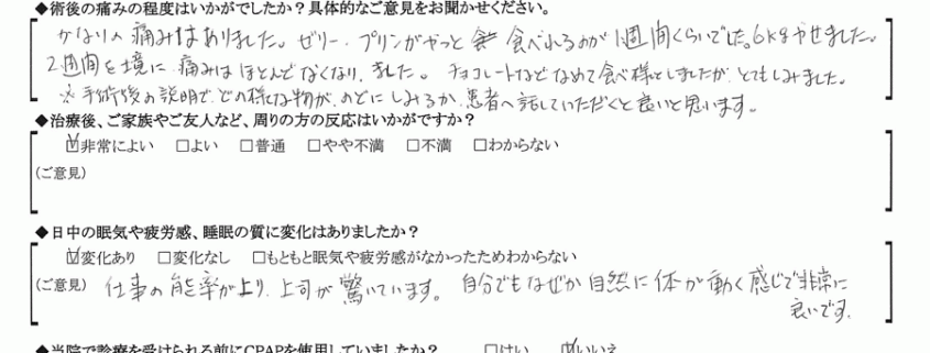 Q.診療(治療)を受けられての感想をお聞かせ下さい。