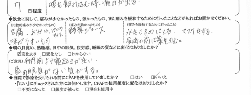 (ご意見) 手術前より寝起きが良い。昼の眠気がない気がする。