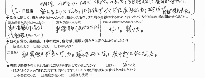 Q.診療(治療)を受けられての感想をお聞かせ下さい。
