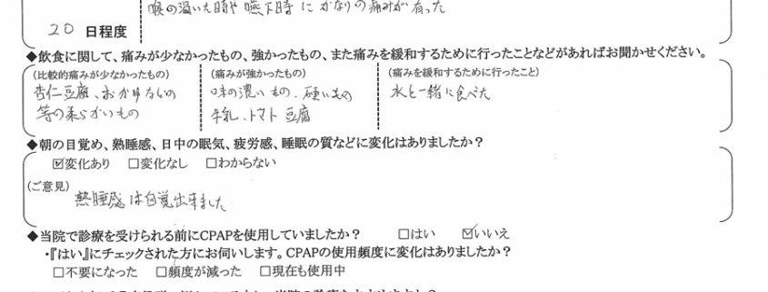 (痛みの程度について) 喉の渇いた時や嚥下時にかなりの痛みがあった