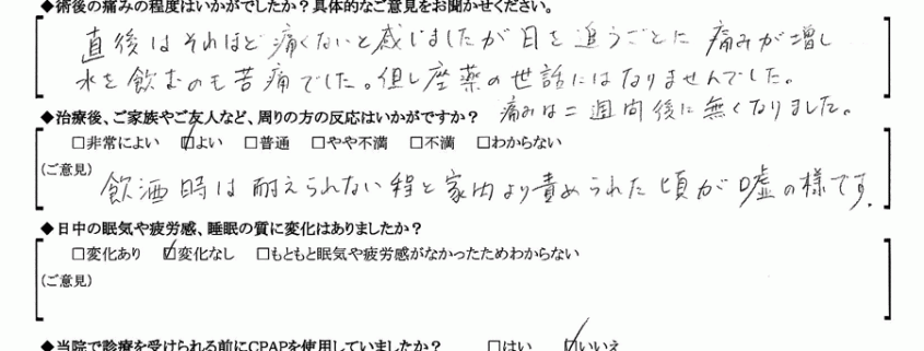 Q.術後の痛みの程度はいかがでしたか?具体的なご意見をお聞かせください。