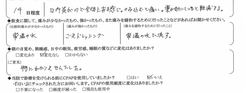 術後の患者様の感想 No.2005