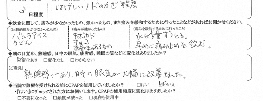 (ご意見) 熟睡感があり、日中の眠気が大幅に改善された。
