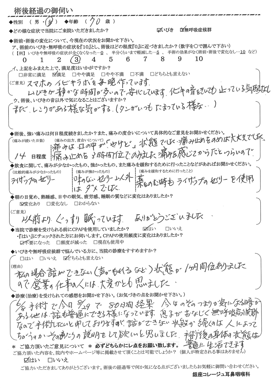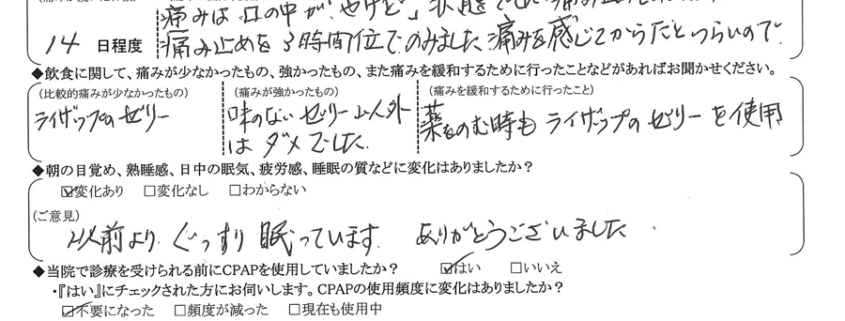 (ご意見) 以前よりぐっすり眠っています。ありがとうございました。