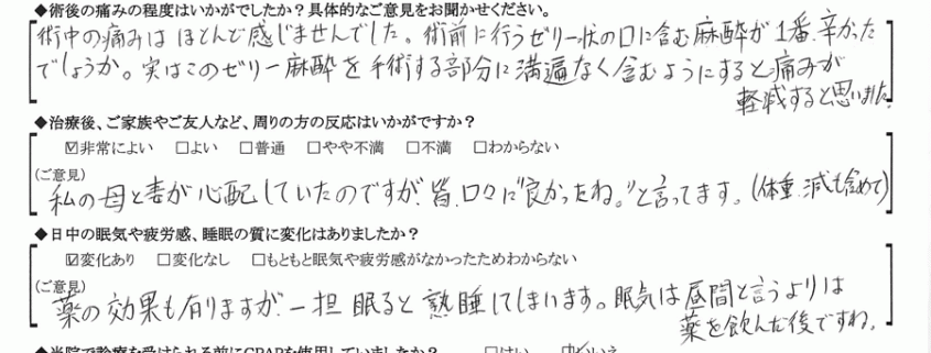 (ご意見) 妻日く、いびきはほとんどなくなってありがたいとのこと。