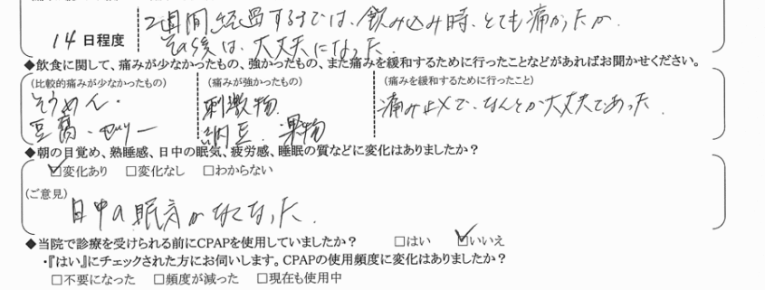 (ご意見) 日中の眠気がなくなった