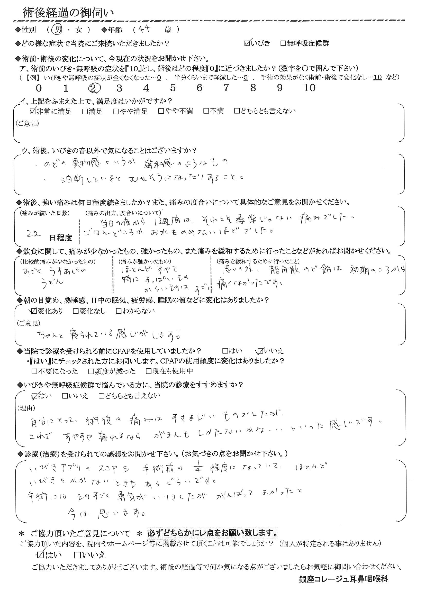 術後の患者様の感想 No.2122