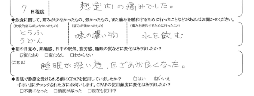 (痛みの程度について) 想定内の痛みでした。