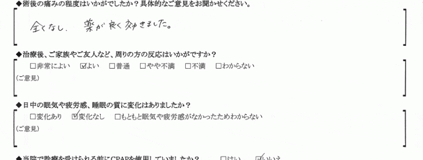 術後の患者様の感想 No.213