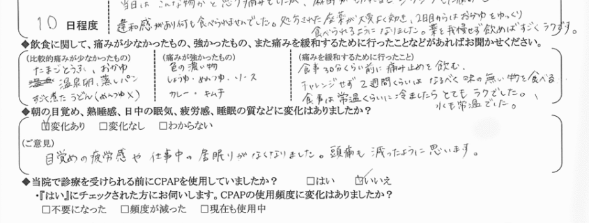 (ご意見)  目覚めの疲労感や仕事中の居眠りがなくなりました。頭痛も減ったように思います。