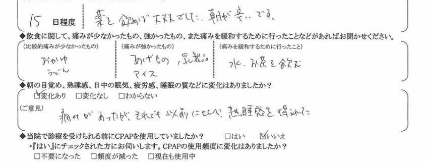 (ご意見) 痛みがあったが、それでも以前に比べ、熟睡感を得られた。