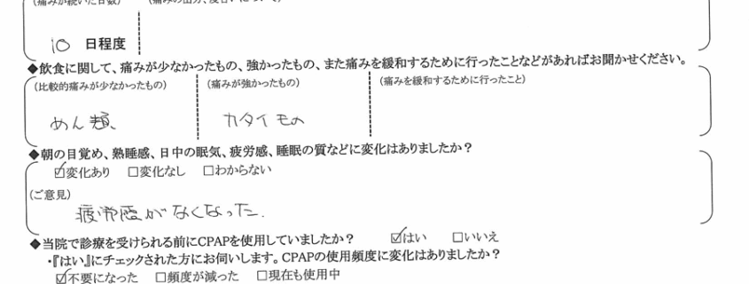 (ご意見) 疲労感がなくなった