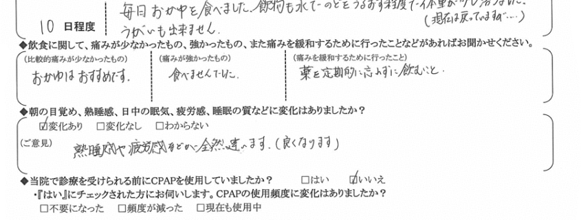 (ご意見) 朝、起床時の激しい頭痛がなくなりました。