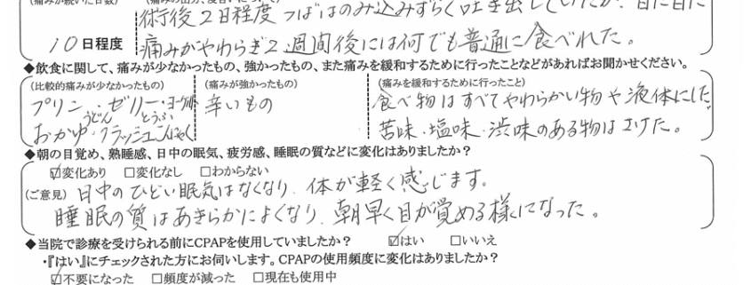 術後の患者様の感想 No.2175