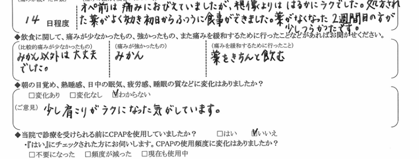 術後の患者様の感想 No.2185