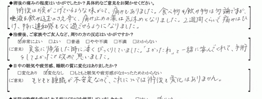 術後の患者様の感想 No.219