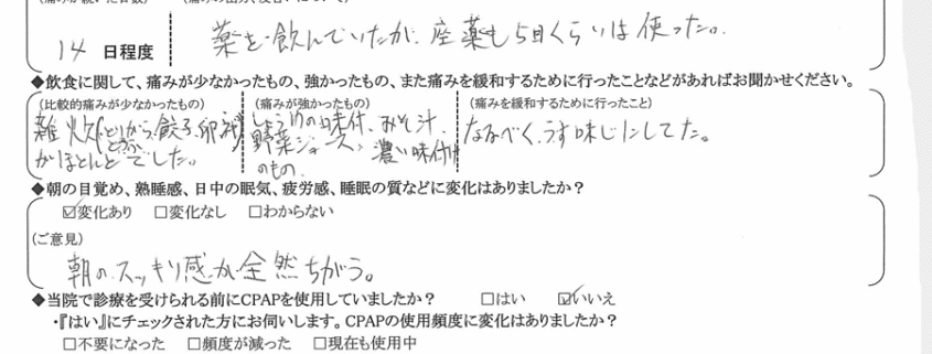 Q.朝の目覚め、熟睡感、日中の眠気、疲労感、睡眠の質などに変化はありましたか?