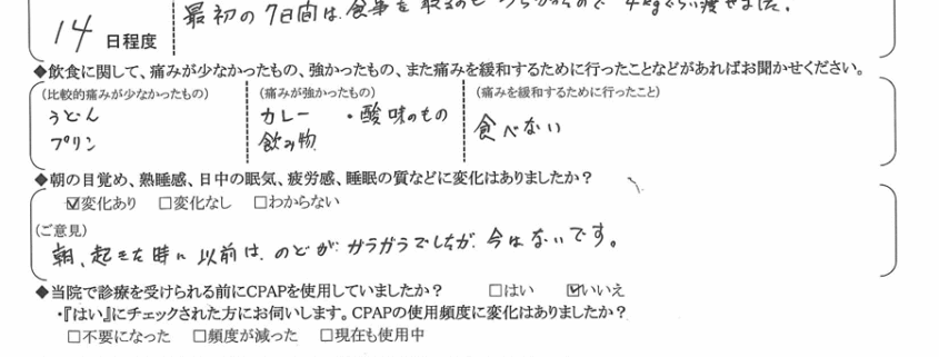 (ご意見) 朝、起きた時に以前はのどがガラガラでしたが、今はないです。
