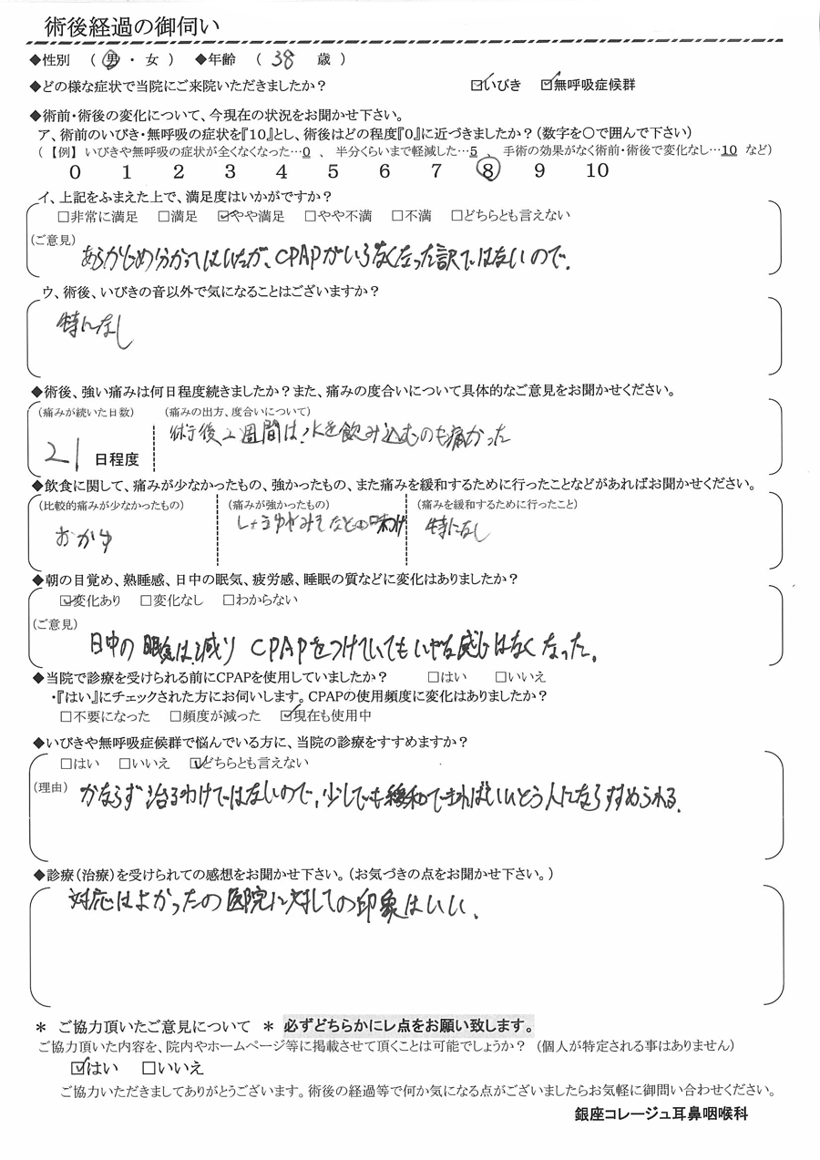 (ご意見) あらかじめ分かっていたが、CPAPがいらなくなった訳ではないので。