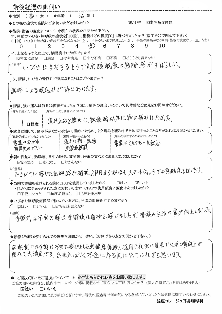 (ご意見) いびきはまだするようですが、睡眠後の熟睡感が素晴らしい。
