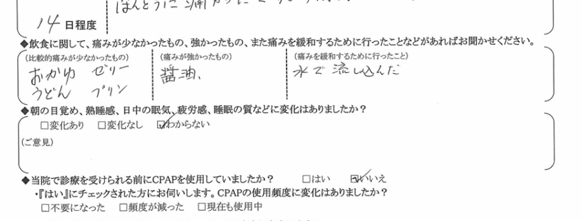 術後の患者様の感想 No.2231