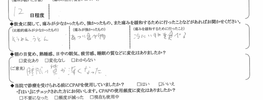 (ご意見)  以前に比べるといびきが少なくなった。
