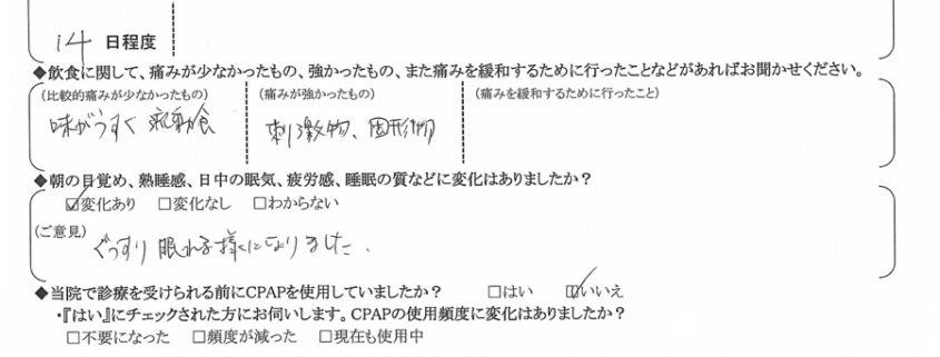 Q.診療(治療)を受けられての感想をお聞かせ下さい。